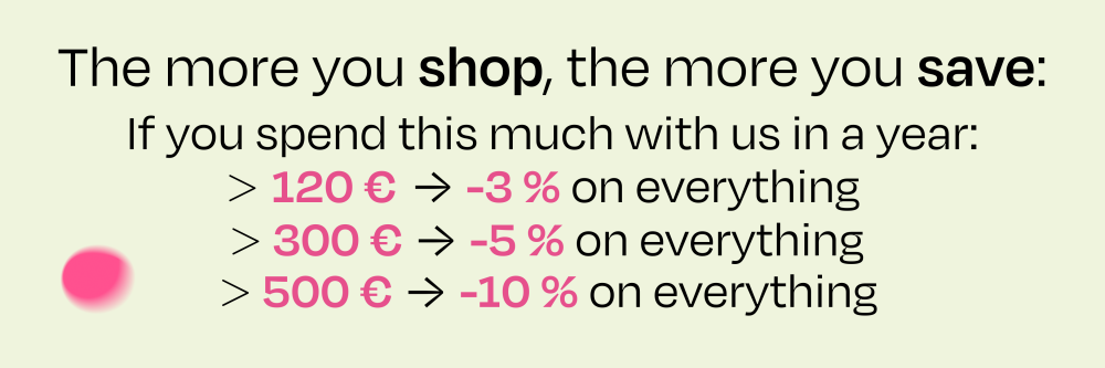We want shopping with us to be more beneficial for you in the long run. That’s why we’ve created a tiered loyalty program, thanks to which you’ll receive an automatic discount on the entire product range based on how much you shop with us.